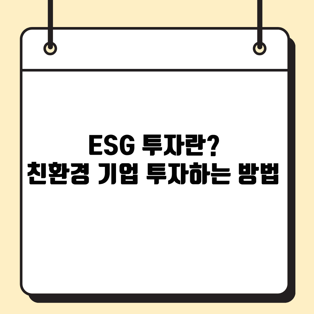 ESG 투자란? 친환경 기업 투자하는 방법 🌱📊