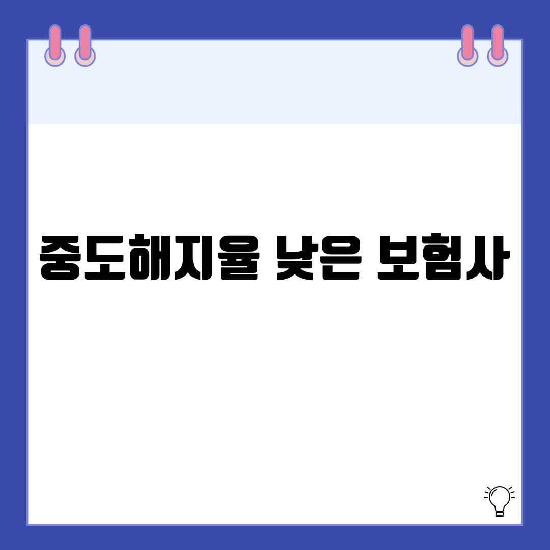 보험 가입 후 일정 기간이 지나기 전에 해지하는 '중도해지'는 보험 소비자에게 손해를 줄 수 있으며, 보험사 입장에서도 고객 신뢰도를 평가할 수 있는 지표 중 하나입니다. 따라서 중도해지율이 낮은 보험사는 그만큼 고객 만족도와 상품 지속성이 높다는 뜻으로 해석할 수 있습니다.