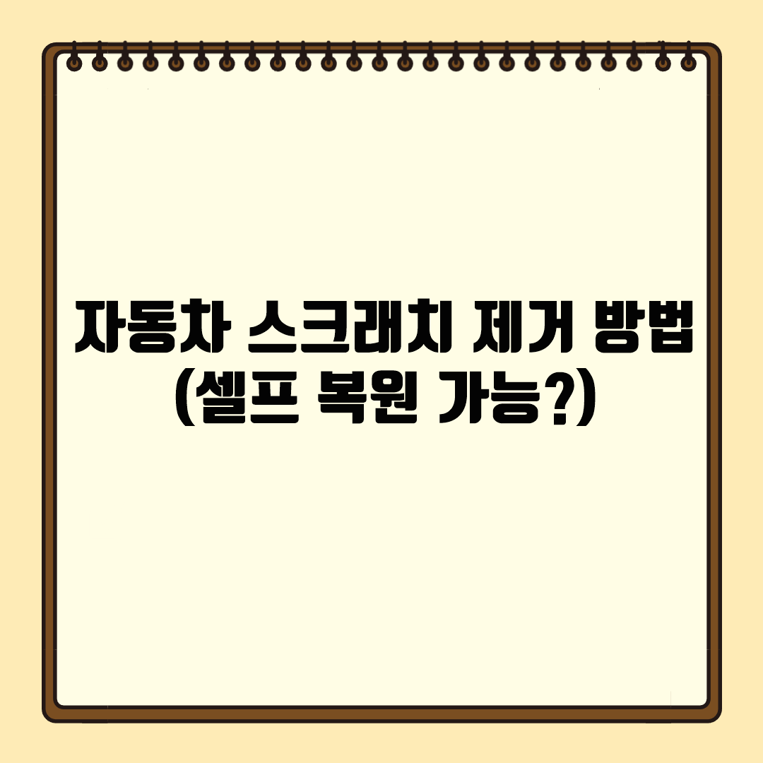 자동차 스크래치는 셀프 복원 가능 여부를 확인한 후, 적절한 도구를 활용하여 효과적으로 제거할 수 있습니다.