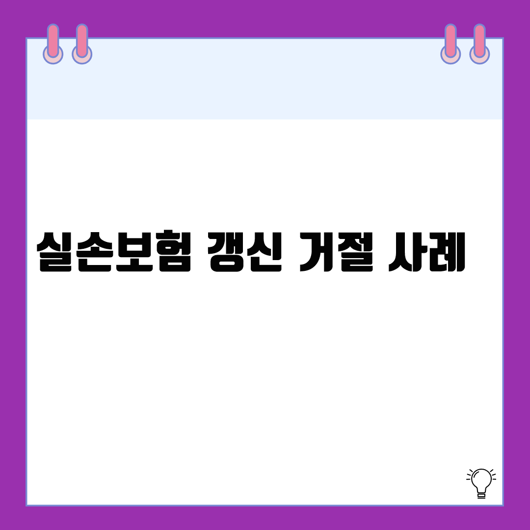 실손보험 갱신 거절 사례 | 갱신이 거절되는 이유와 대응법 정리실손의료보험은 일반적으로 자동 갱신이 가능한 구조지만, 일부 경우에는 보험사가 갱신을 거절하는 사례도 발생합니다. 보험료를 계속 납입해 왔음에도 불구하고 갱신이 거절된다면 보장 공백이 생길 수 있어 큰 불이익으로 이어질 수 있습니다. 이 글에서는 실손보험 갱신 거절이 발생하는 실제 사례와 이유, 대응 방법에 대해 구체적으로 설명합니다.✅ 실손보험 갱신 구조 기본 이해실손보험은 1년 또는 3년 단위로 갱신되는 ‘갱신형’ 구조가 일반적갱신 시점마다 보험료가 변동되거나 보험사가 갱신을 거절할 수 있음보통 갱신 거절은 드문 편이나, 특정 조건에서는 가능❗ 실손보험 갱신 거절 주요 사례사례 1: 고액 청구 반복최근 2년간 연속으로 고액의 보험금 청구 ..