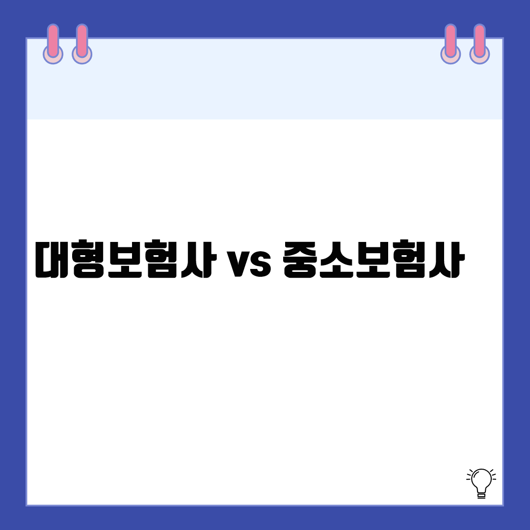 대형보험사 vs 중소보험사 비교 | 장단점과 선택 기준 분석보험에 가입할 때 어떤 보험사를 선택할지 고민하는 소비자들이 많습니다. 특히 대형보험사와 중소보험사 중 어느 쪽을 선택할지는 중요한 판단 기준 중 하나입니다. 각 보험사는 브랜드 신뢰도, 상품 구성, 서비스 질, 보험금 지급 능력 등에서 차이를 보이기 때문에, 본문에서는 대형보험사와 중소보험사의 차이점과 장단점을 정리하고 선택 기준을 제시하겠습니다.대형보험사의 특징과 장점1. 브랜드 신뢰도와 안정성삼성생명, 교보생명, DB손해보험 등은 오랜 업력과 자산 규모를 바탕으로 소비자의 신뢰가 높습니다.**보험금 지급능력지표(지급여력비율, RBC)**가 높아 위기 상황에서도 안정적인 지급 가능2. 전국 네트워크 및 디지털 인프라 구축전국 지점망과 콜센터,..